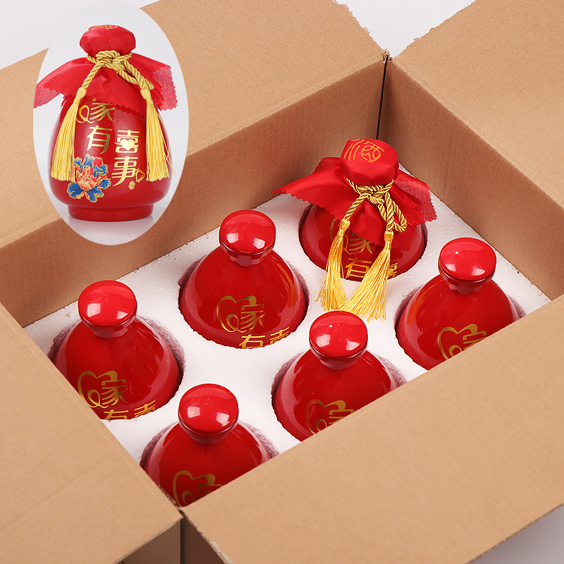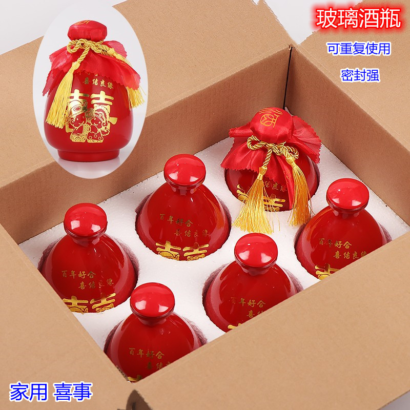 | nameOriginal | 9WOR one Jin happy wine bottle raw pulp wine wedding glass wine bottle empty bottle with lid household sealed foam box bag |