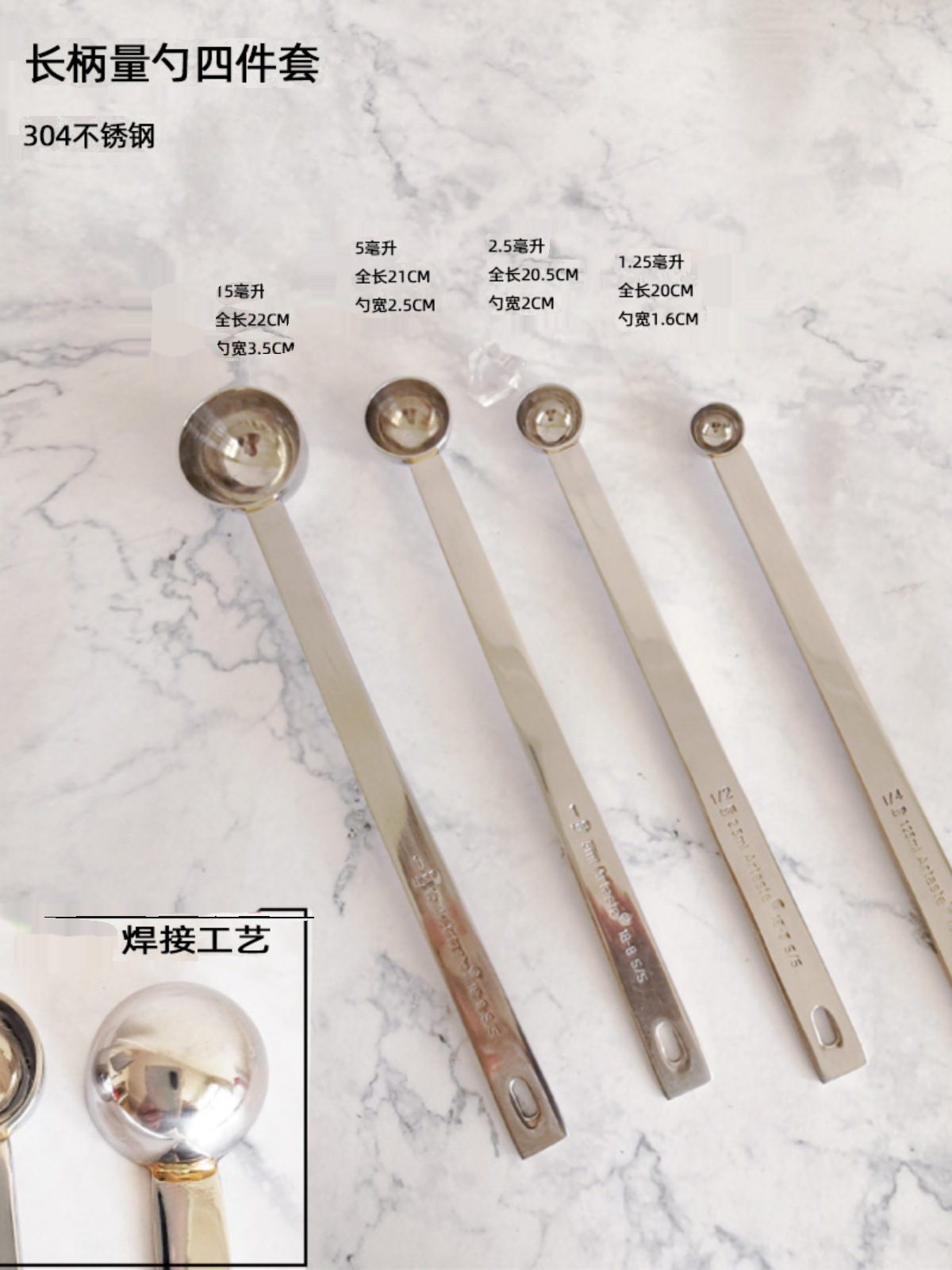 9ZRT304 stainless steel measuring spoon long handle 2.5/5/10/15/20/25/30ml seasoning teaspoon fruit powder spoon 1