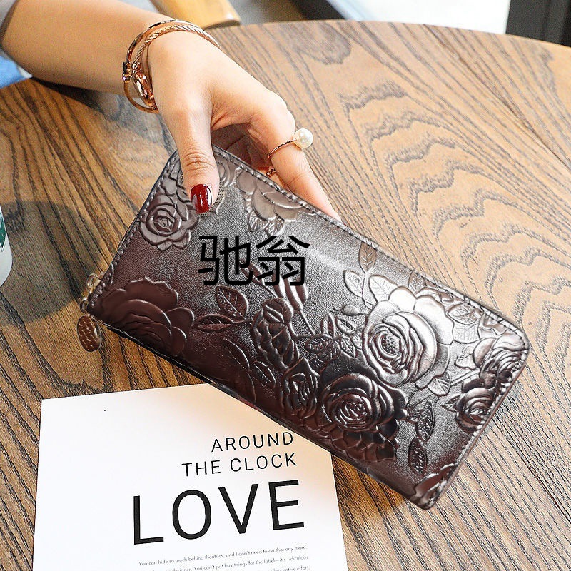A also women’s wallet long leather 2023 new national style painted vintage clutch zipper wallet mother