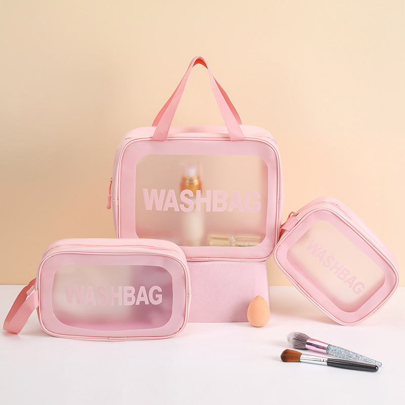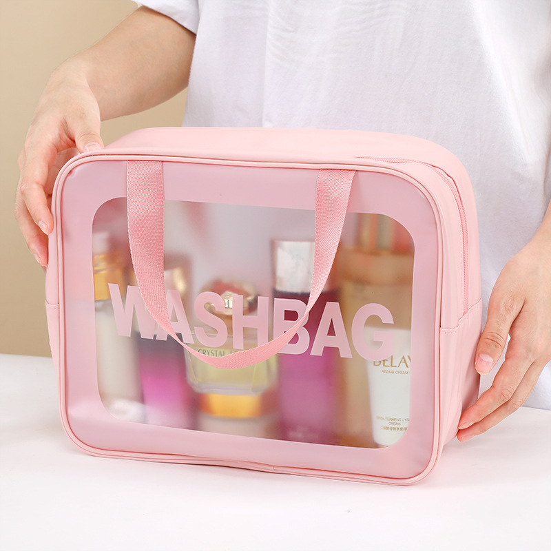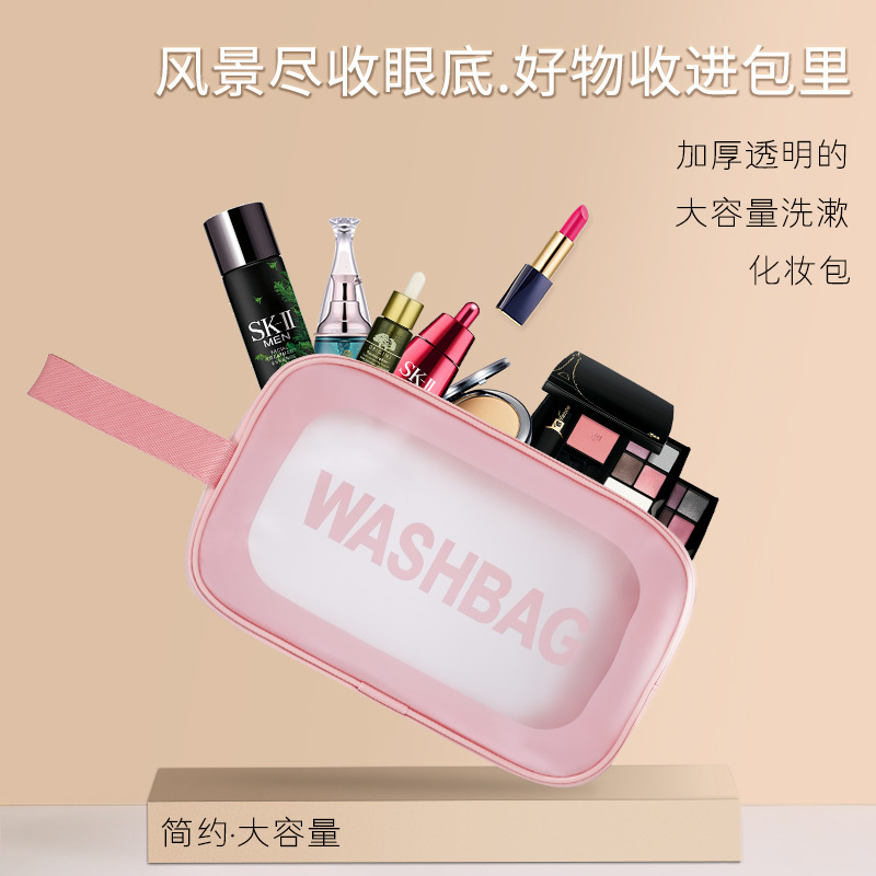 A batch of portable cosmetic bag transparent pu waterproof ins wind high color value cosmetic bag large capacity sense.