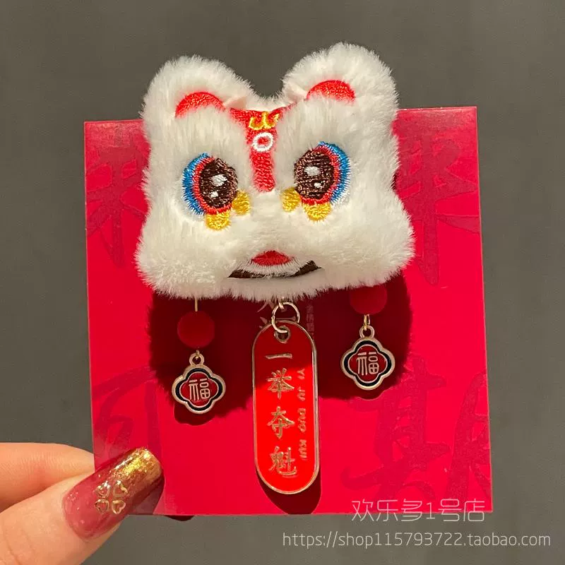 A bright future, plush cute lion badge, cartoon lion dance brooch, neckline decoration accessories, gold list title pin