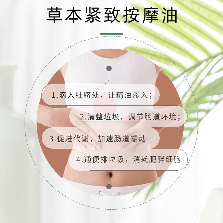 | nameOriginal | A drop of navel fluid, tightening and shaping massage essential oil, moistening intestines, relaxing bowels, slimming, exploding fat, reducing weight, and a drop of lean essential oil |