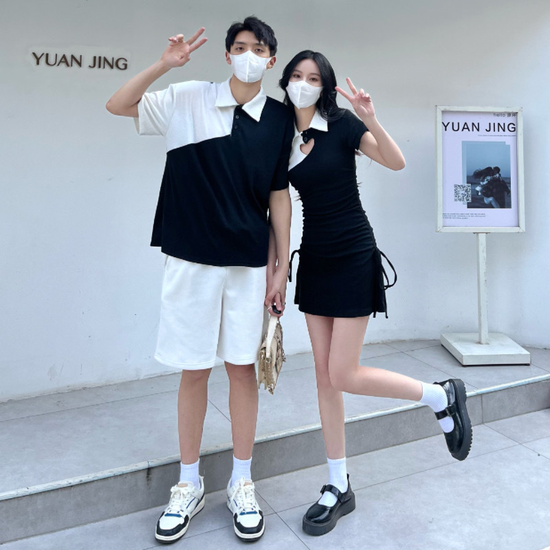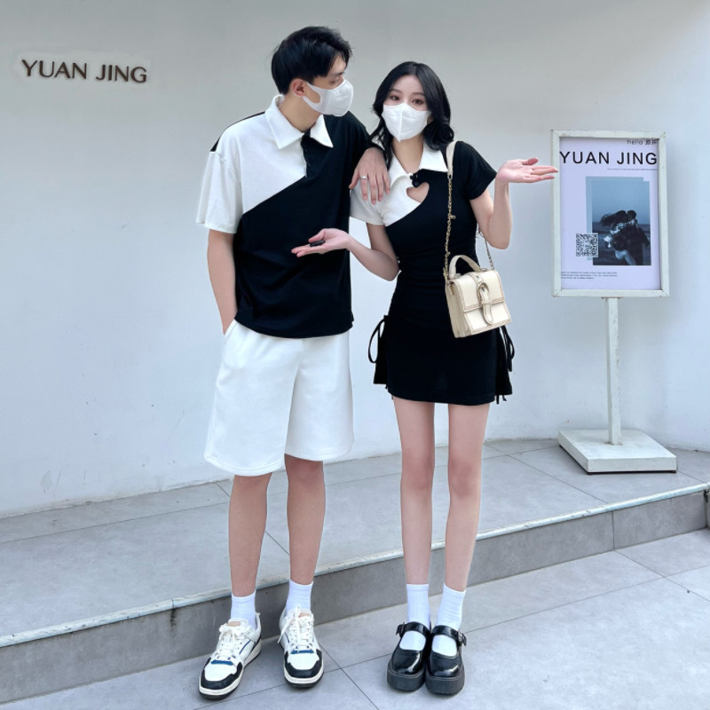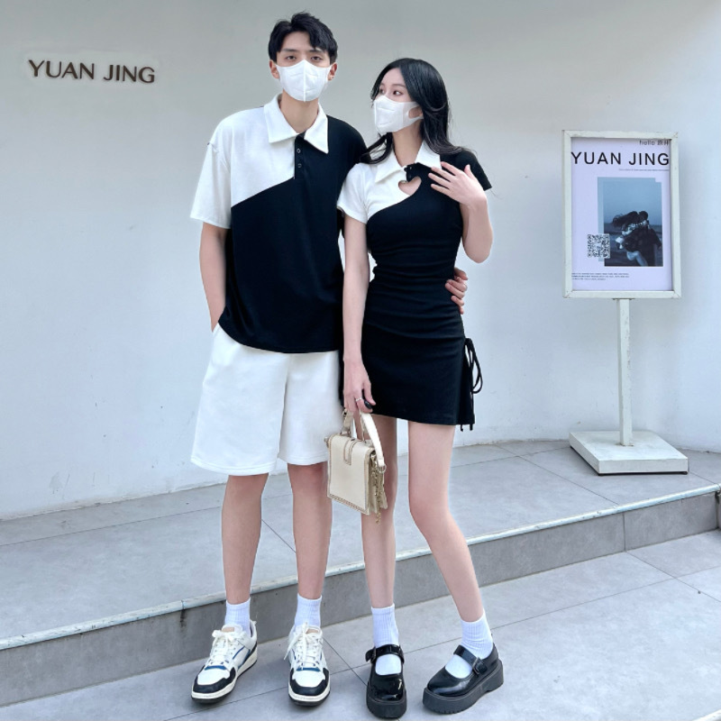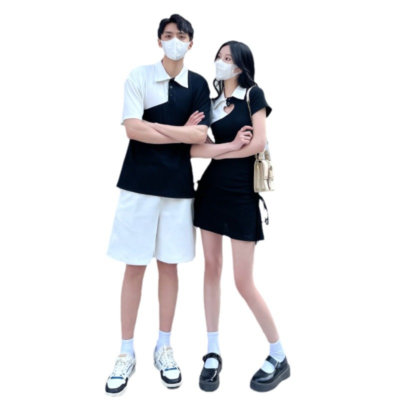 A generation of 2024 in stock real collar dress hollow love color matching lovers cotton