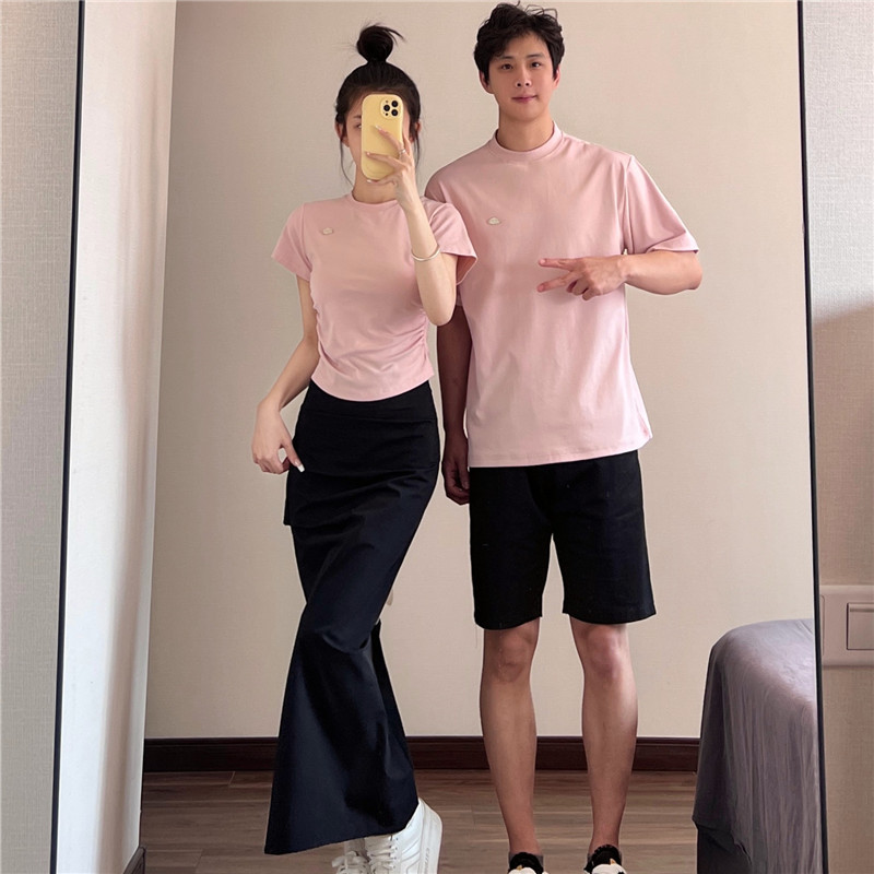 A generation of 2024 lovers new waist pleated shoulder short short sleeve T-shirt women's summer slim niche