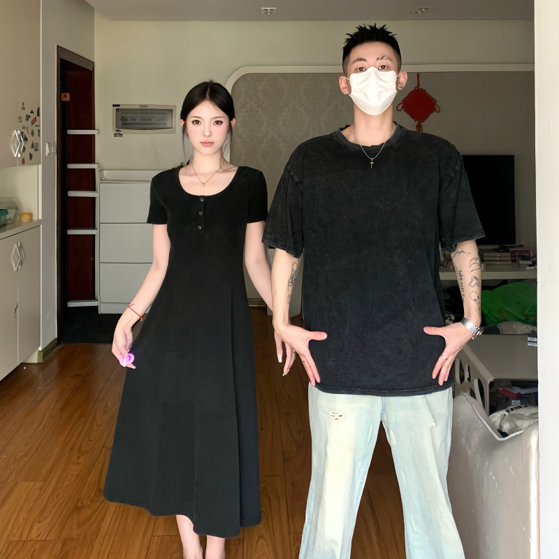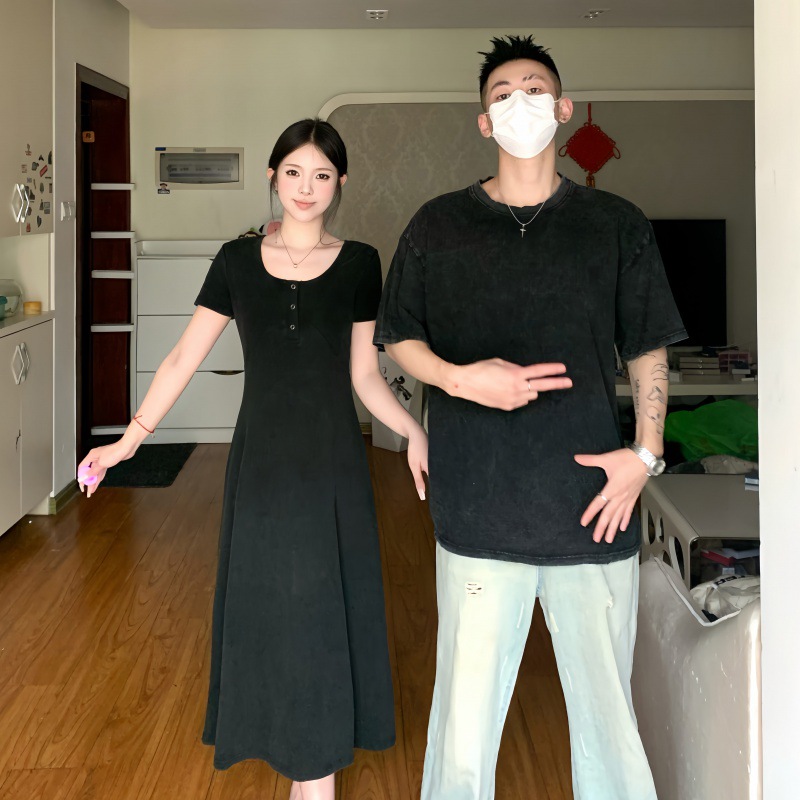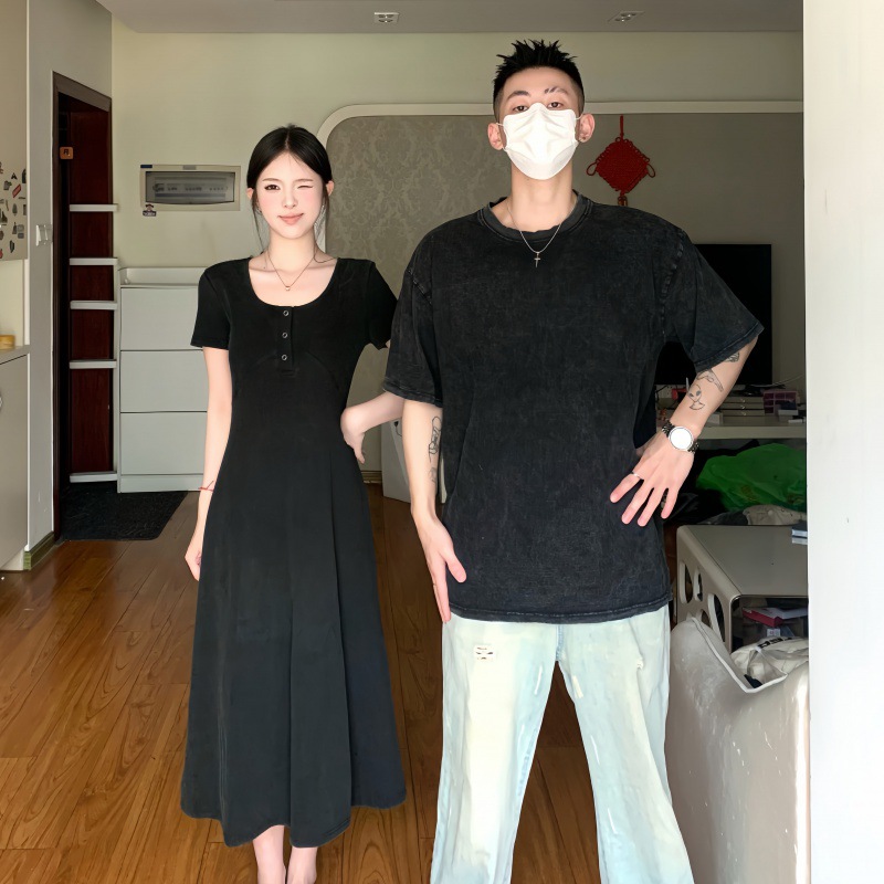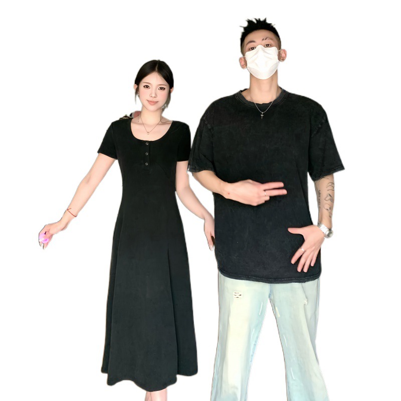 A generation of 2024 real-life sweethearts outfit niche design hanging feeling small black skirt retro wash water waist slimming