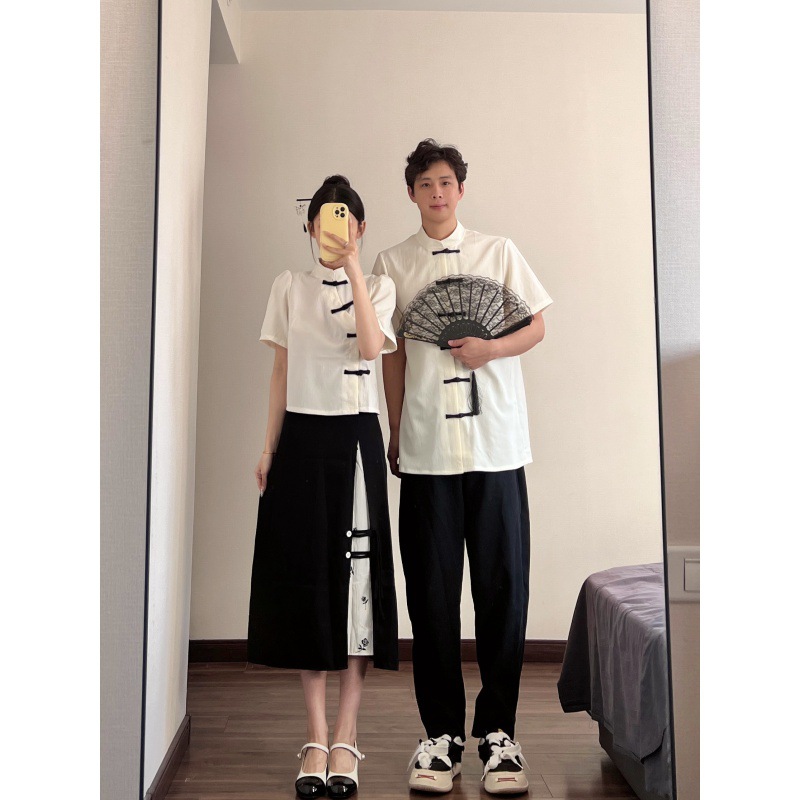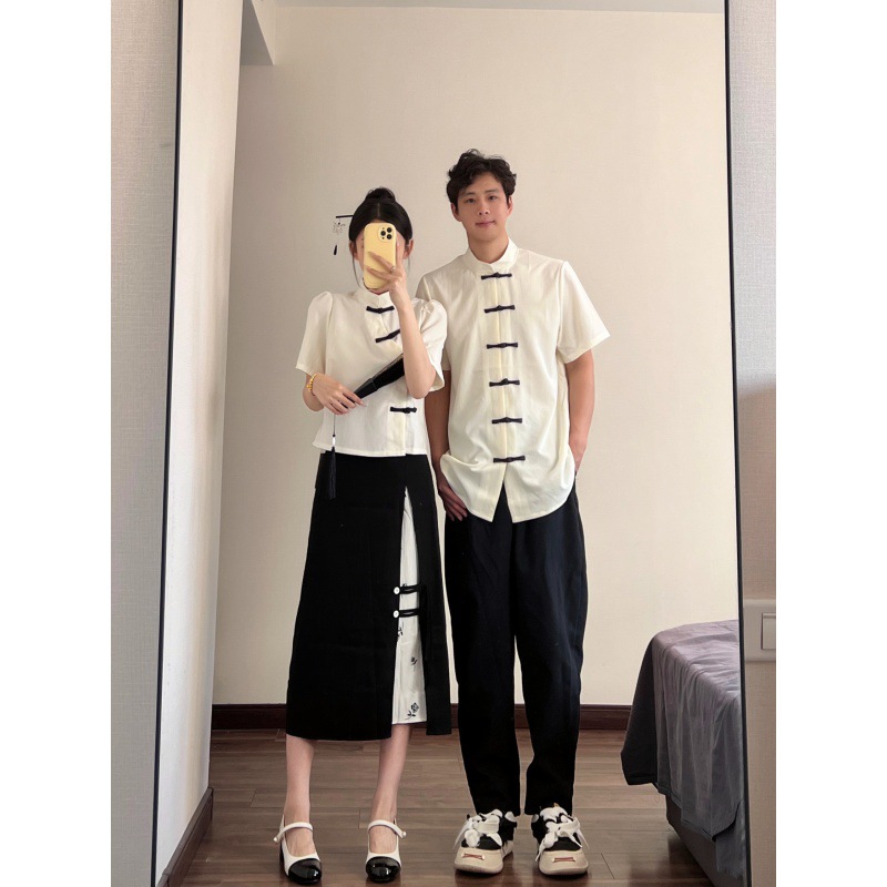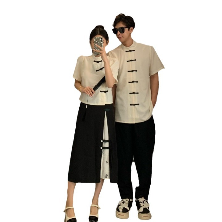 | nameOriginal | A generation of 2024 real lovers outfit summer new Chinese buckle suit skirt short sleeve shirt antique |