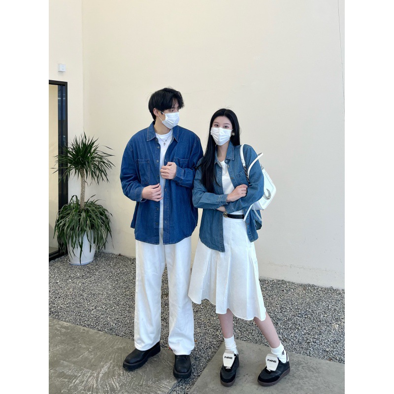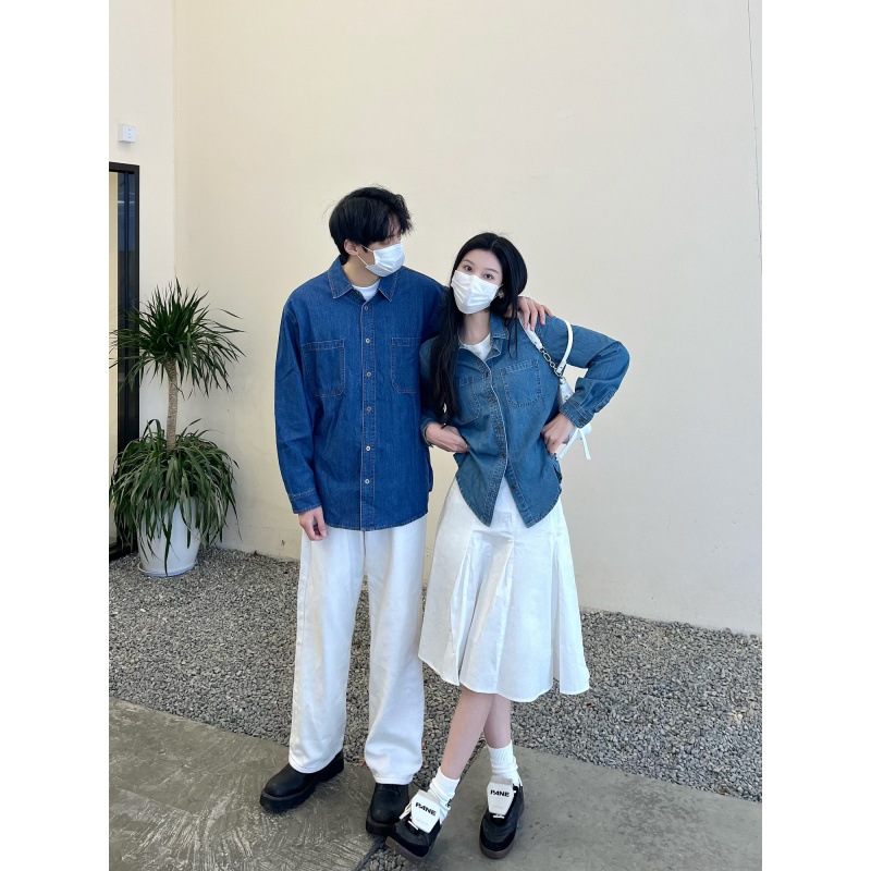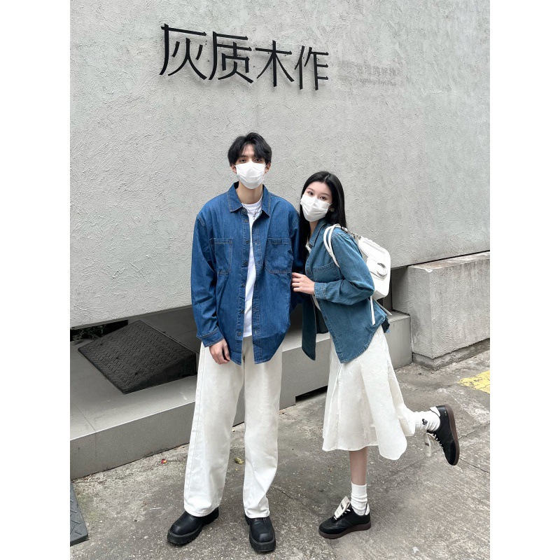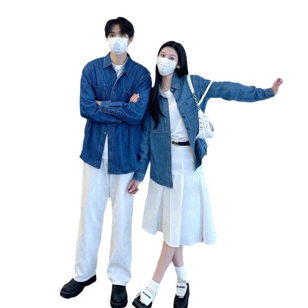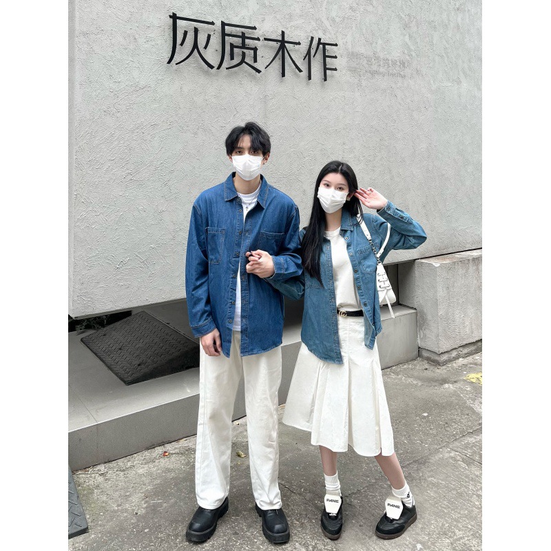 | nameOriginal | A generation of 2024 real shot denim blue coat stacked college sweet Korean fan simple shirt jacket |