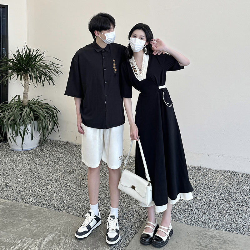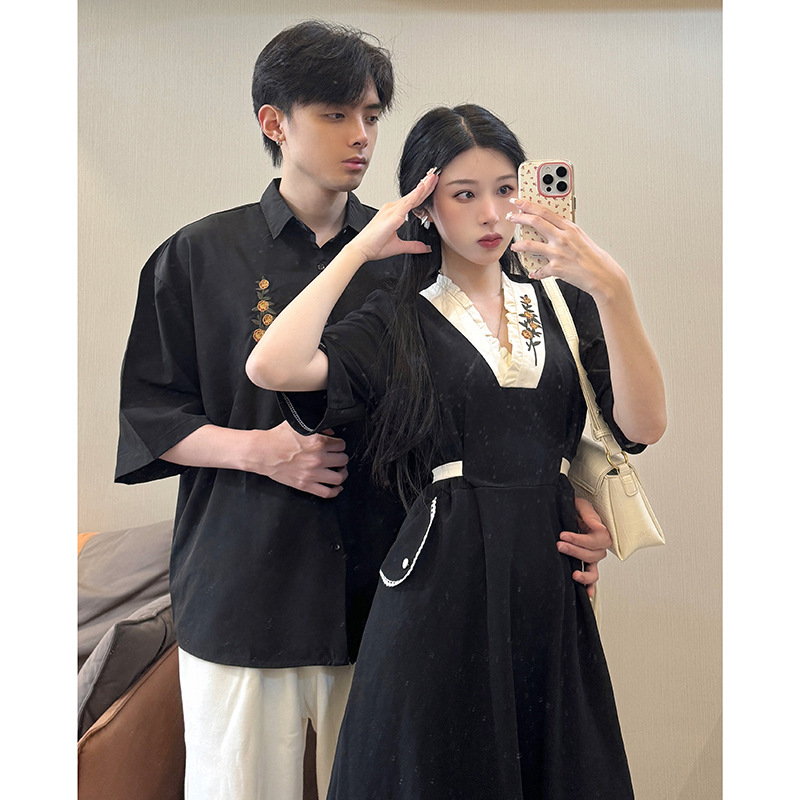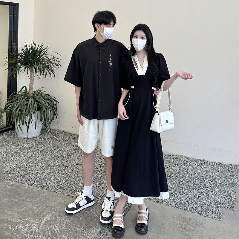 A generation of 2024 real shot lovers Hepburn contrast stitching retro French lace embroidery dress