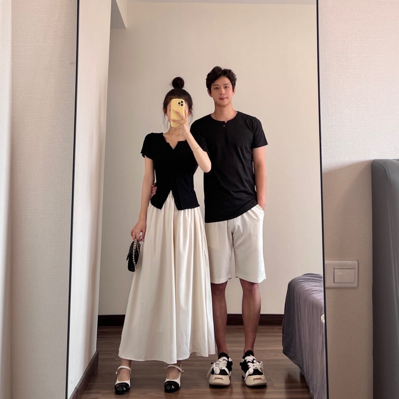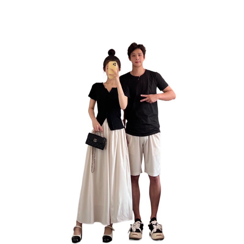 | nameOriginal | A generation of 2024 real shot lovers V-neck short sleeve T-shirt summer coat high waist slim wide leg pants |