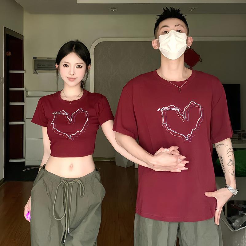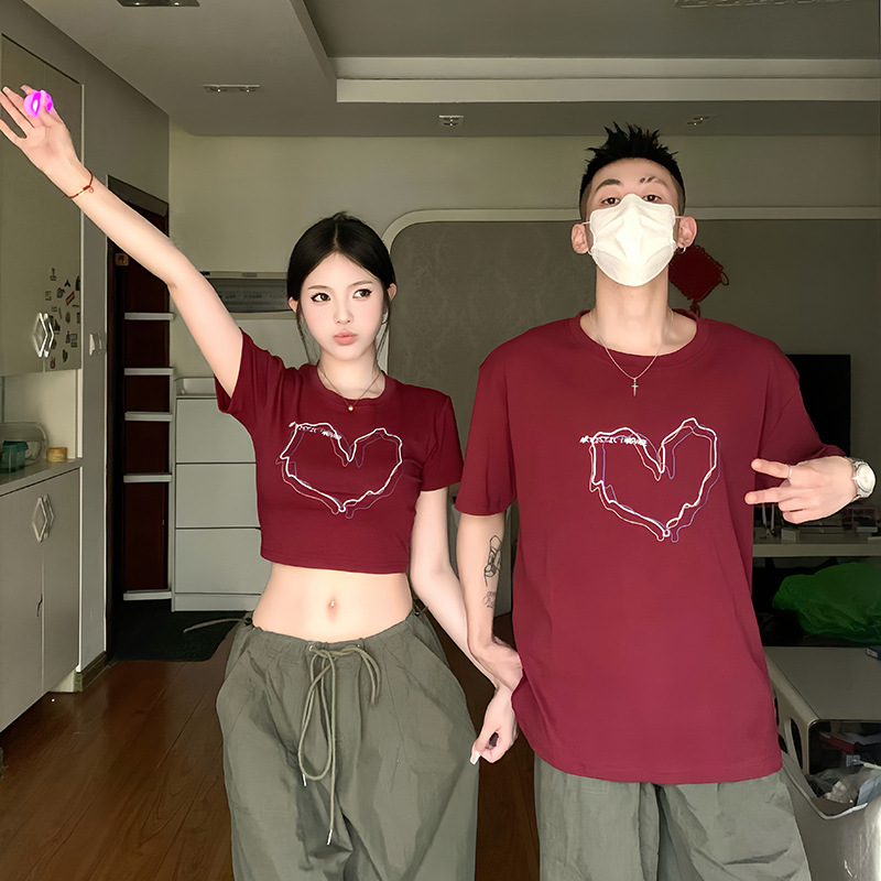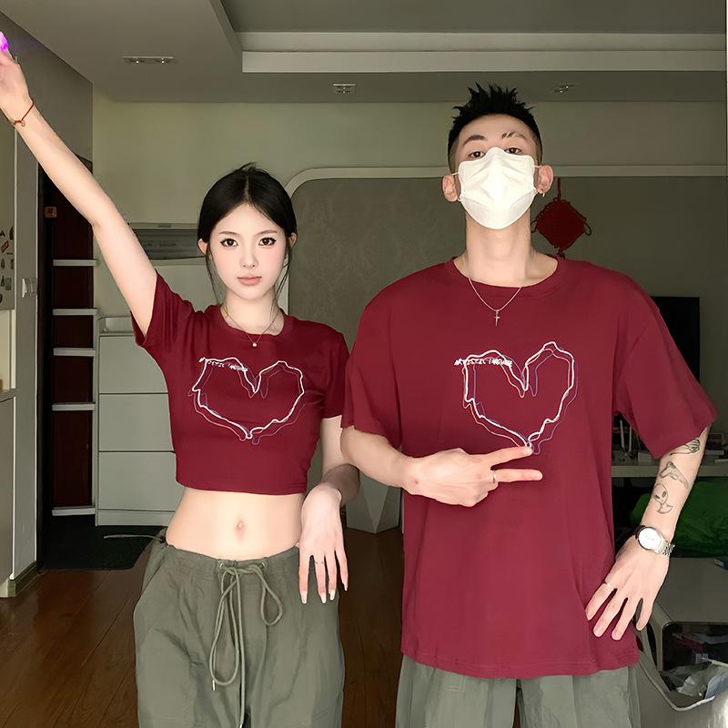 | nameOriginal | A generation of 2024 real shot new sweethearts outfit short sleeve T-shirt a long and a short couple |