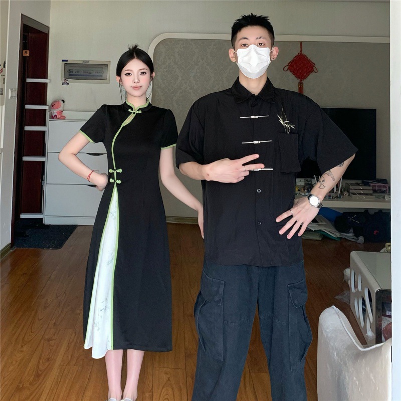 | nameOriginal | A generation of 2024 real shot# shipment# lovers dress stitching cheongsam women's summer dress new Chinese improved dress |