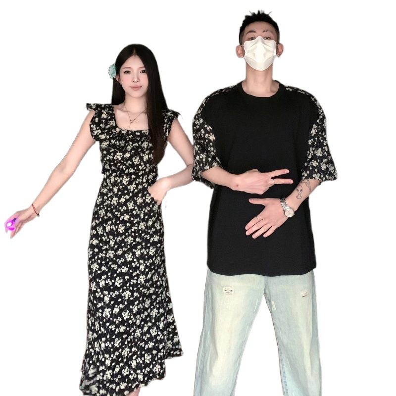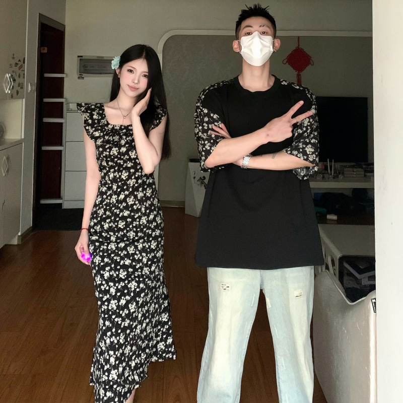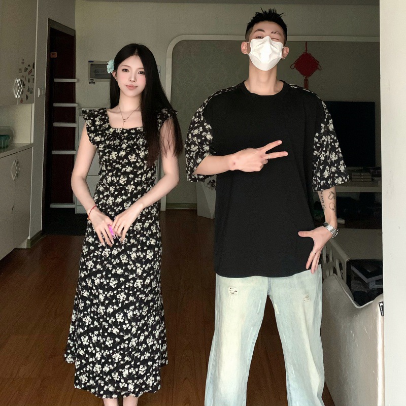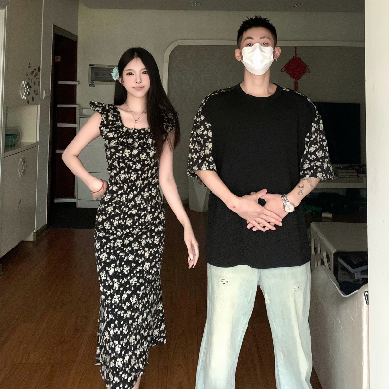 A generation of 2024 real shot summer Korean version of flying sleeve chiffon long dress lovers short sleeve