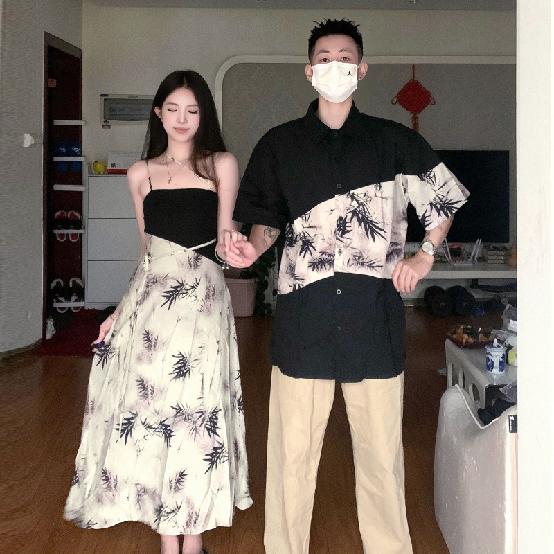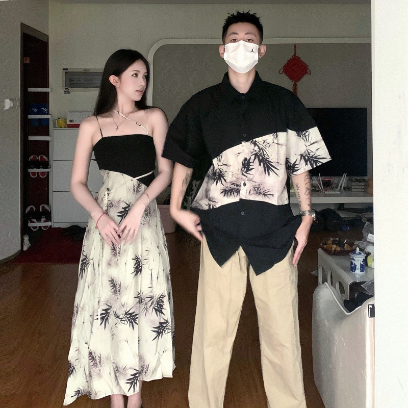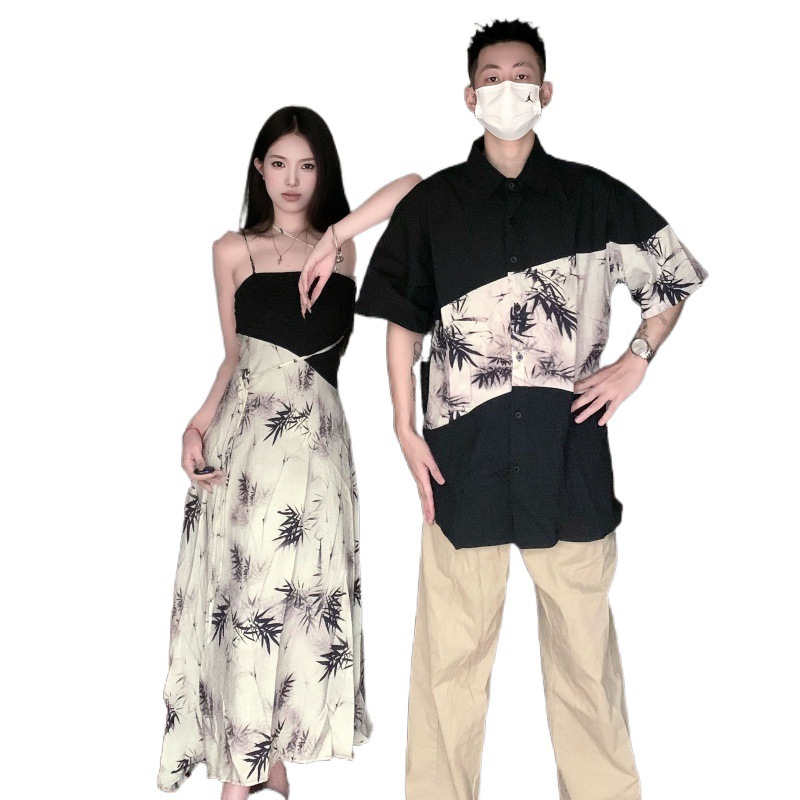 | nameOriginal | A generation of 2024 real shot summer ladies new Chinese lovers sling dress men's stitching short sleeve shirt |