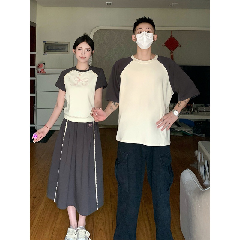 | nameOriginal | A generation of 2024 real shot summer new lovers short sleeve lace half-length skirt color matching shirt jacket |