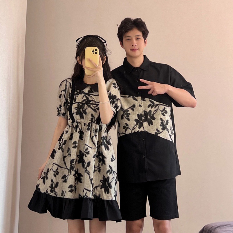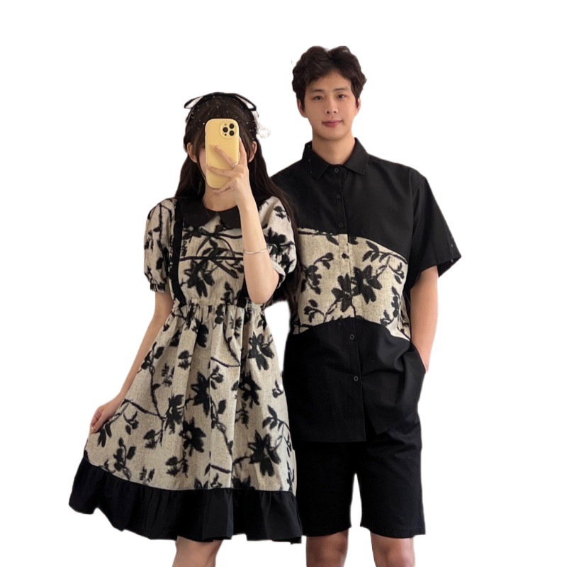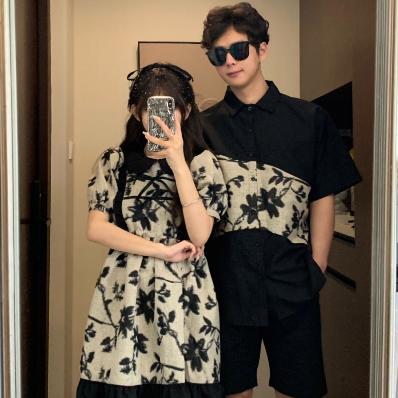 | nameOriginal | A generation of 2024 real shot summer new sweethearts outfit academic style short dress men's color matching shirt |