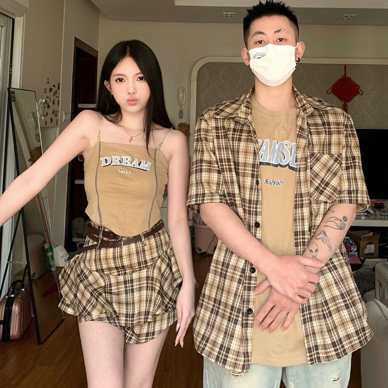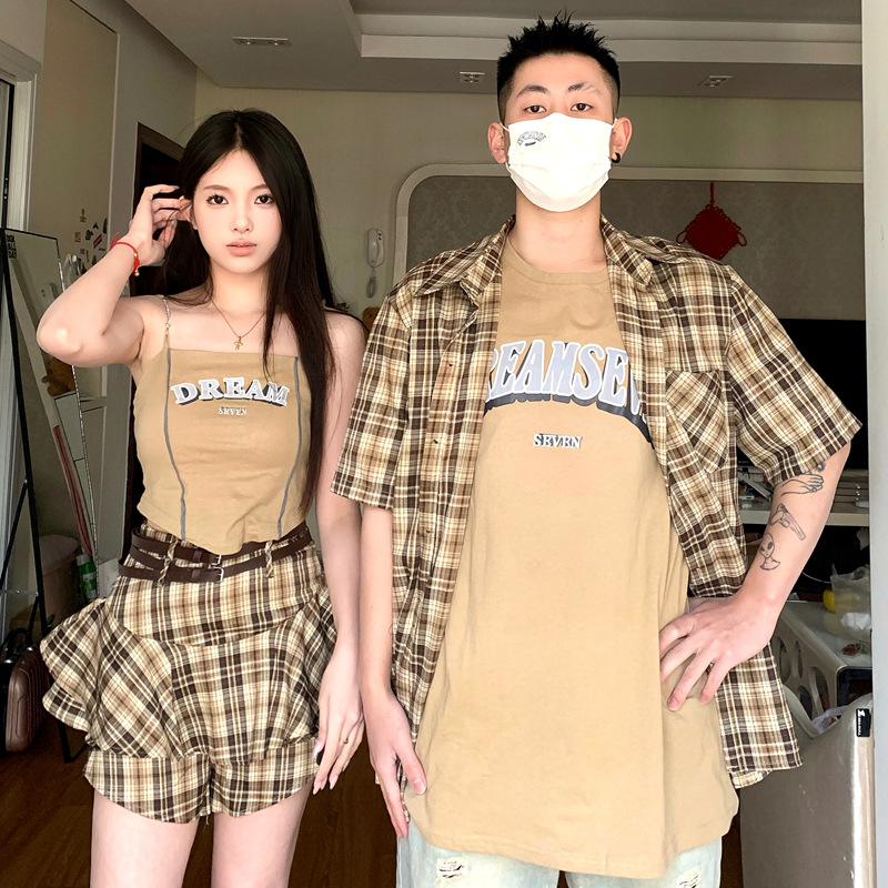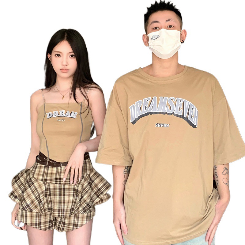 | nameOriginal | A generation of 2024 tide brand lovers American niche cotton suspenders simple pants skirt short sleeve fashion suit |