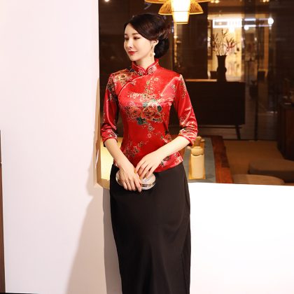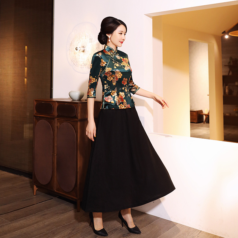 A generation of autumn and winter gold velvet jacket cheongsam daily performance mother fashion seven sleeve size slim