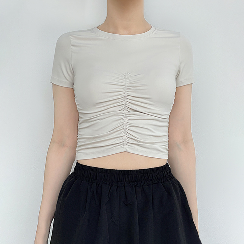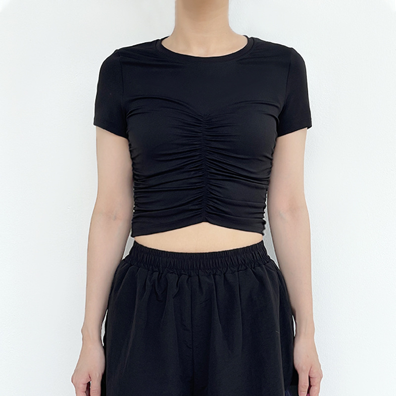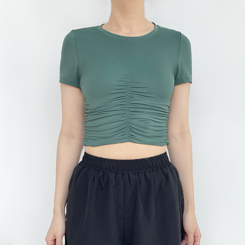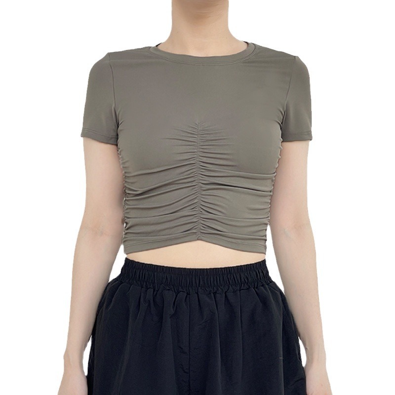 | nameOriginal | A generation of European and American summer new pleated slimming yoga jacket casual Joker slim crew neck sports short sleeve |
