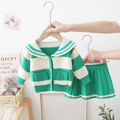 A generation of Korean version of 2023 children’s sweater new autumn and winter girls cardigan academic style lapel striped suit