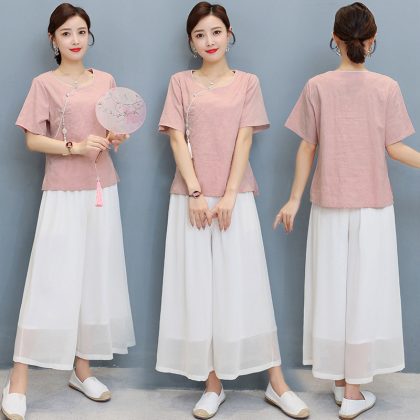 | nameOriginal | A generation of summer new Chinese style cotton and linen yoga clothing Zen tea clothing Zen clothing jacket + chiffon wide leg pants |