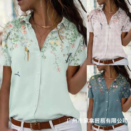 | nameOriginal | A large number of spot 2023 cross-border independent station women's fashion printed top casual short sleeve loose button shirt |