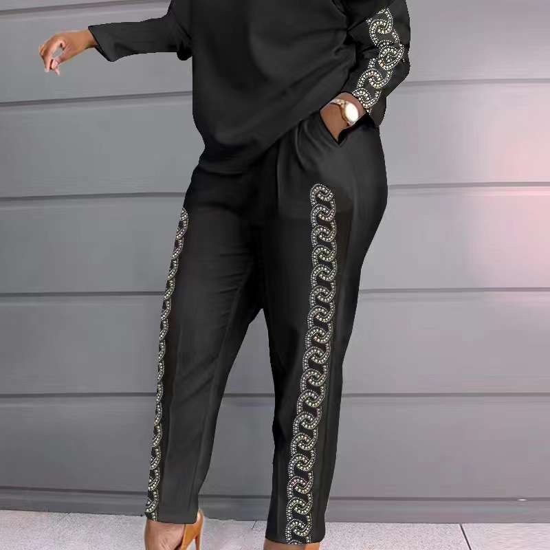 | nameOriginal | A large number of spot Amazon European and American fashion stitching long sleeve large size loose women's casual two piece set |