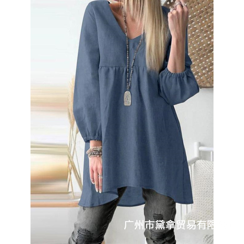 | nameOriginal | A large number of spot European and American 2023 new Amazon AliExpress large size Loose Women's cotton and linen V-neck casual shirt dress |