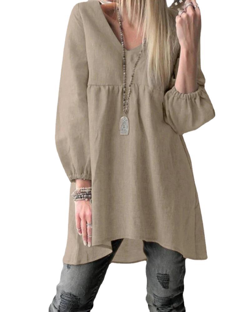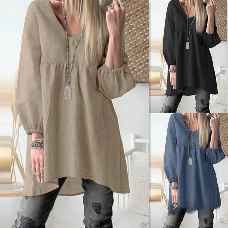 | nameOriginal | A large number of spot European and American new Amazon women's solid color V-neck pleated lantern sleeve top casual cotton and linen shirt |