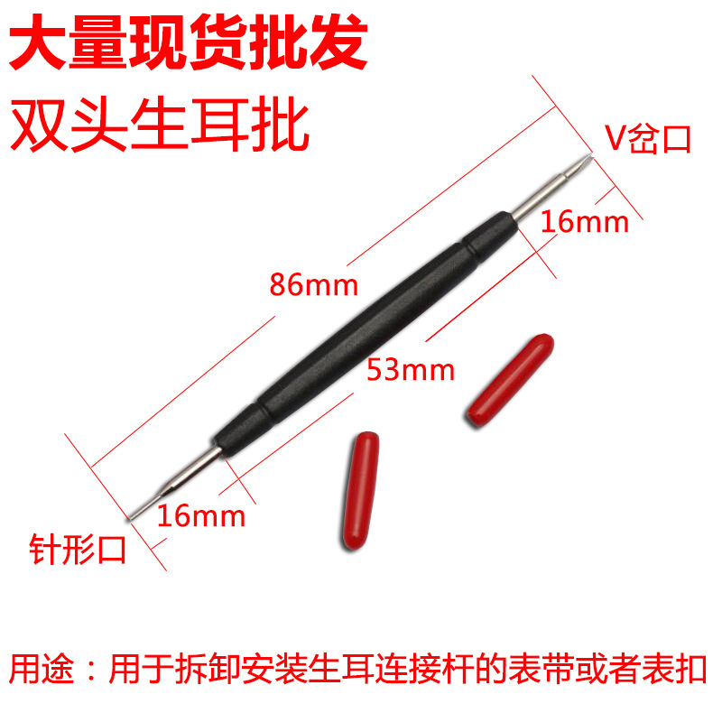 | nameOriginal | A large number of spot wholesale watch repair tools disassembly watch strap disassembly watch strap double raw ear batch raw ear fork tools |