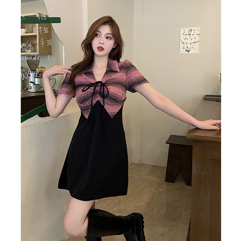 A -line dress in summer fat mm to cover the belly fake two pieces