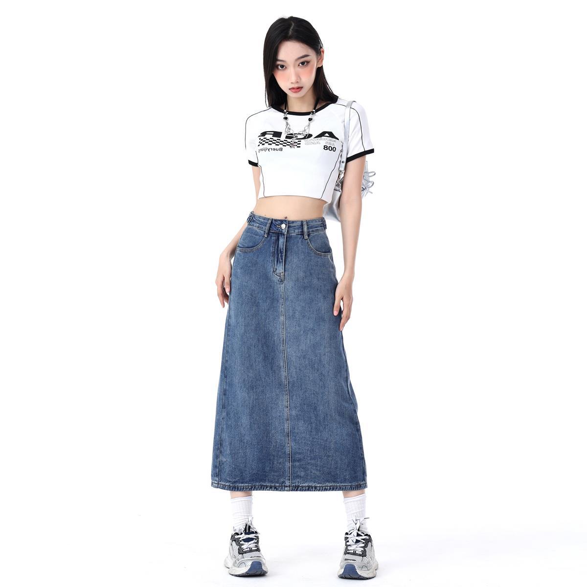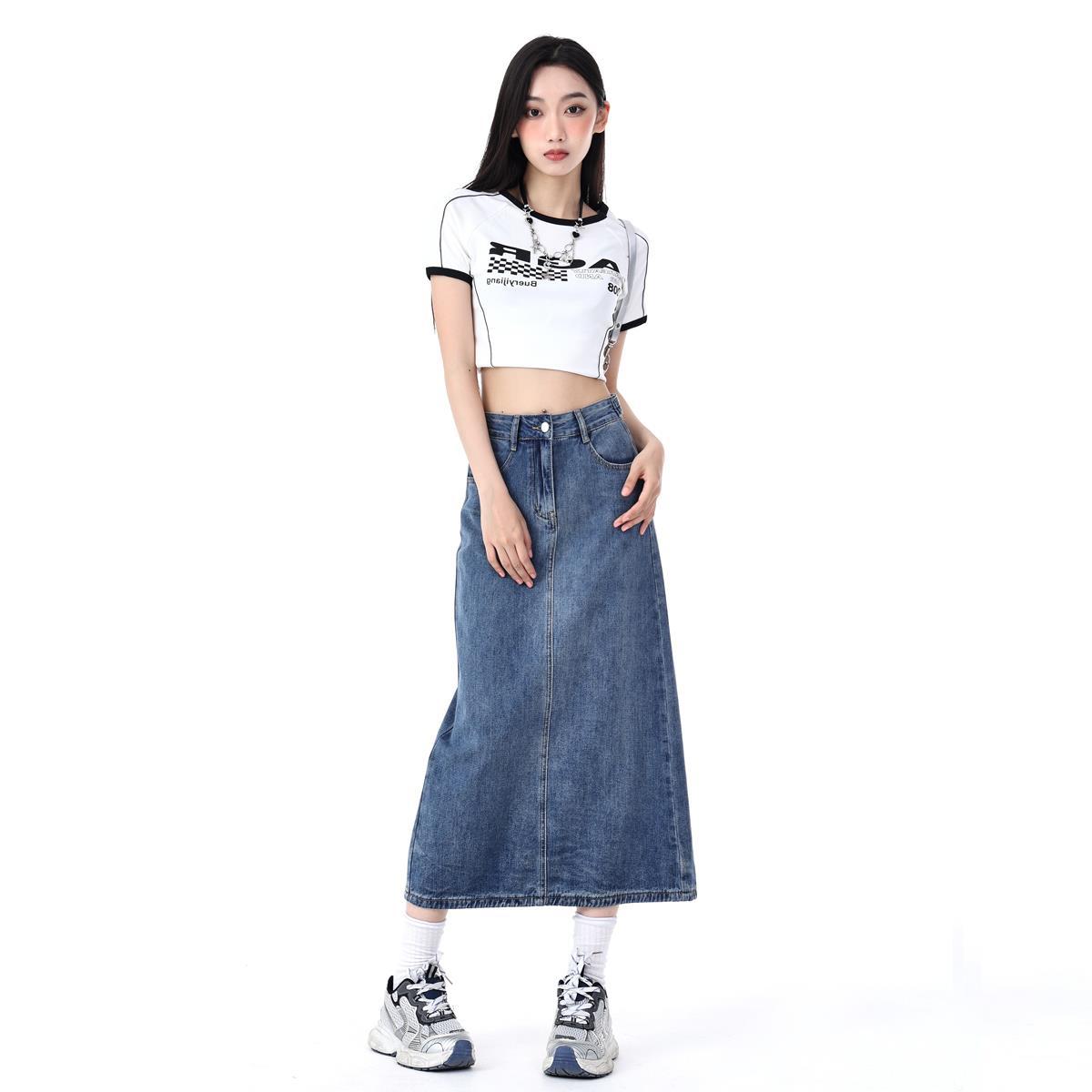 | nameOriginal | A- line High Waist Denim Skirt Women's 2024 Summer New Loose Slimming Split Mid-Length Skirt Hip Skirt |