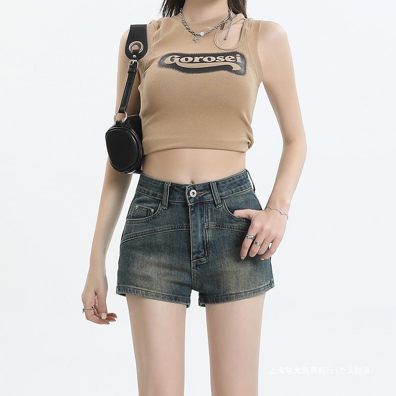 A- line Hot Pants Super Short Summer Small High Waist Denim Shorts Women’s Explosive New Retro Slimming Spice Girls 202CD