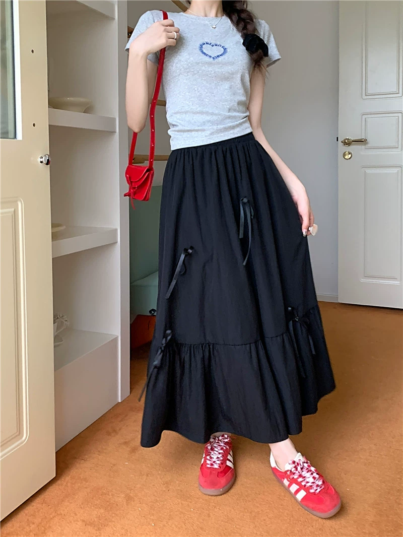 | nameOriginal | A-line skirt with pear-shaped figure and draped bow for fat girls |