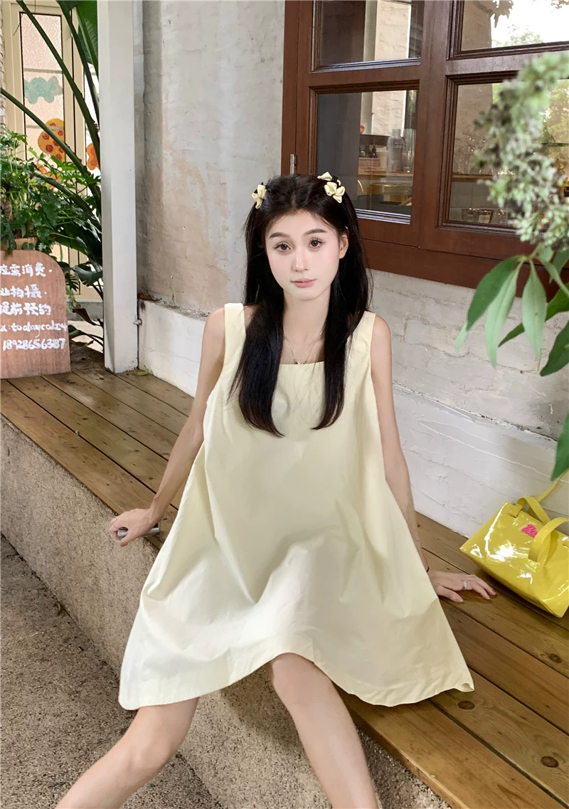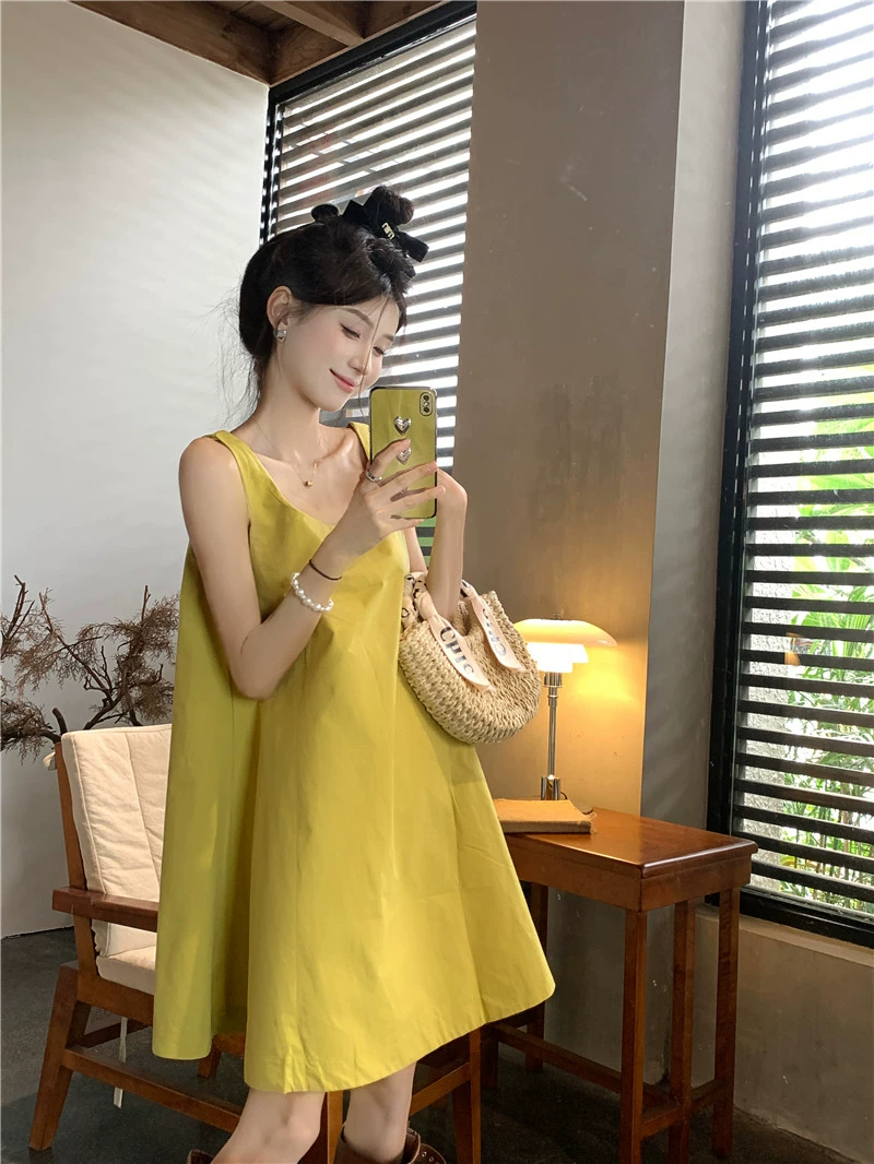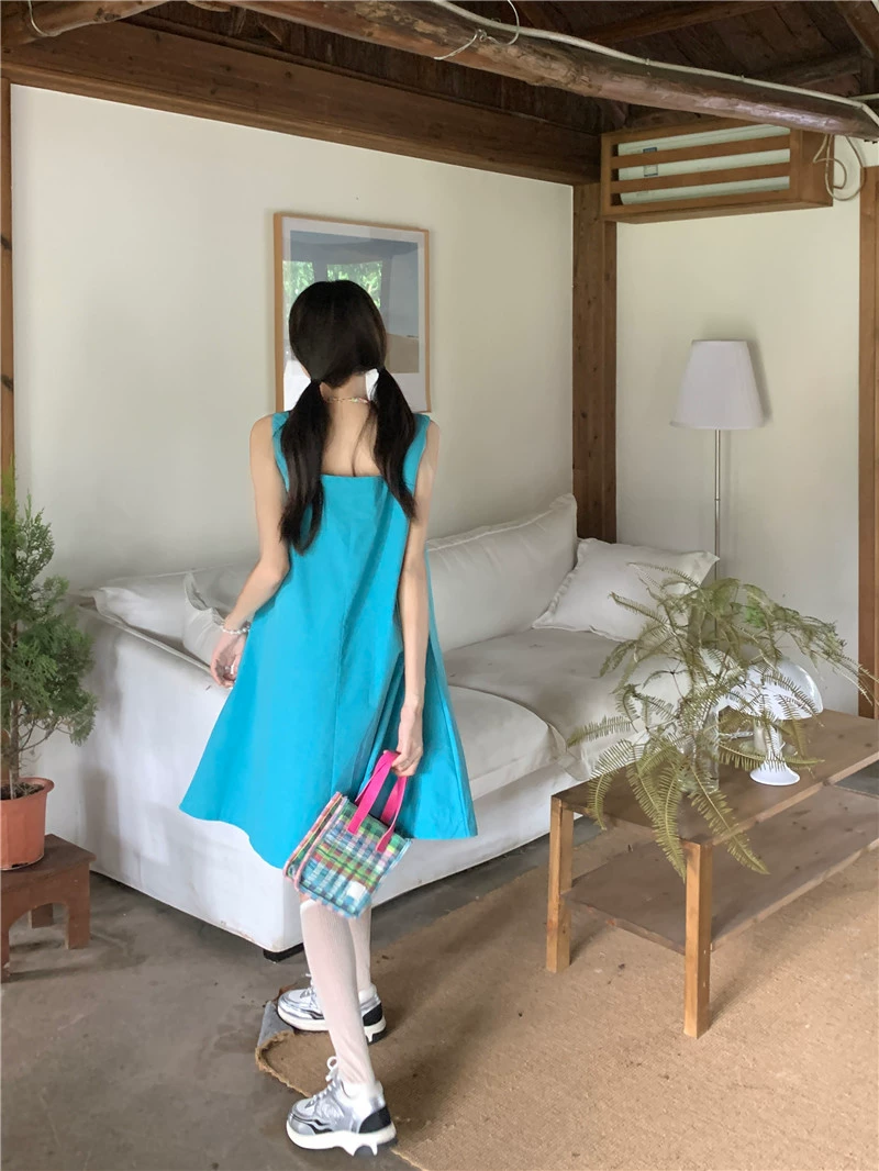 | nameOriginal | A-line summer simple loose solid color suspender dress |