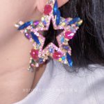 | nameOriginal | A pair of hot-blooded little diva five-pointed star STAR colorful rhinestone shiny exaggerated catwalk earrings |