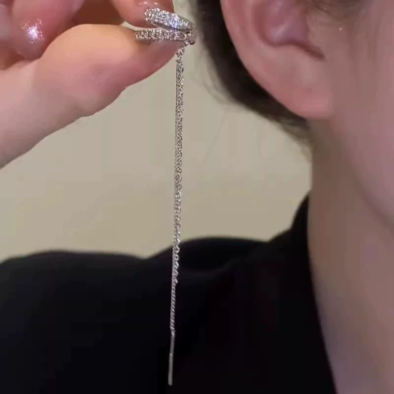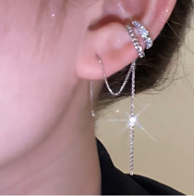 A pair of tassel-encrusted diamond ear cuff earrings, exquisite and versatile design earrings for women with fashionable niche elf ears.