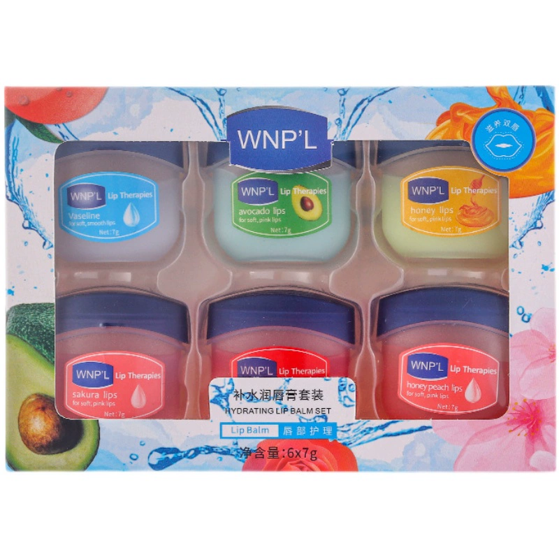 | nameOriginal | A set of 6 hydrating moisturizing lip balms that deeply moisturizes, softens cuticles, exfoliates dead skin, prevents dryness and cracks, and improves lip lines |