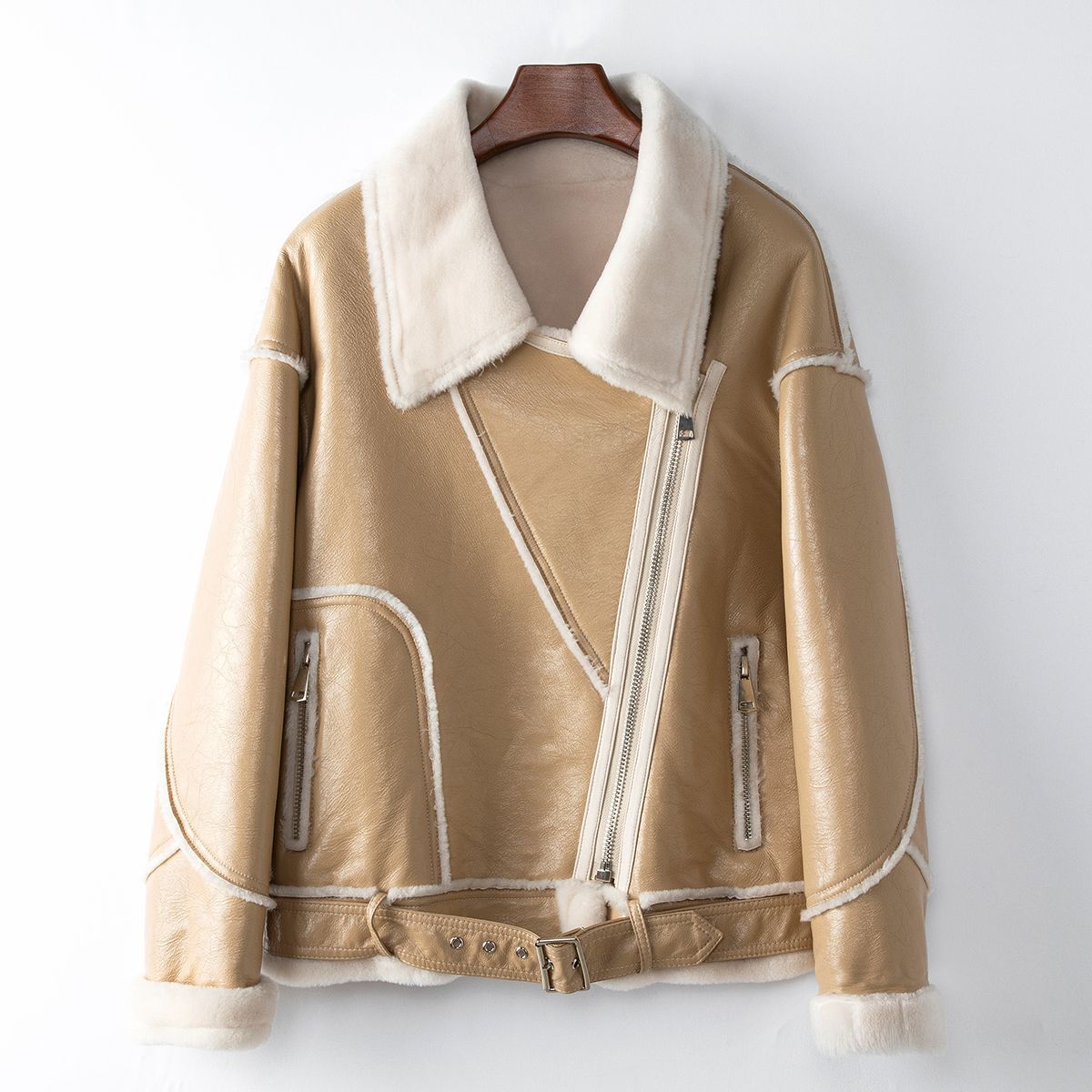 | nameOriginal | A small amount of clothing 2024 autumn Haining new PU stitching 100% wool motorcycle imitation fur coat women's coat |