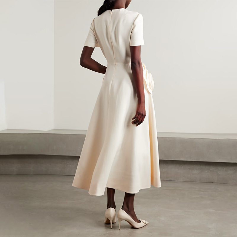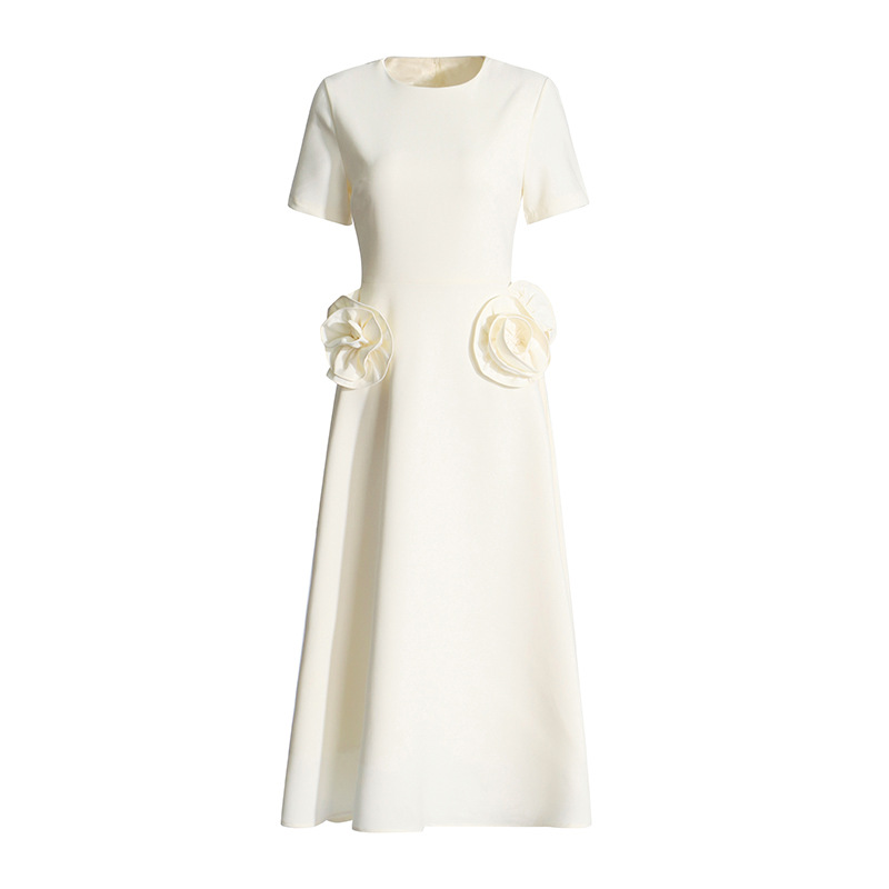 | nameOriginal | A- word long skirt 2024 summer new fashion temperament round neck waist slimming flower stitching design dress women |