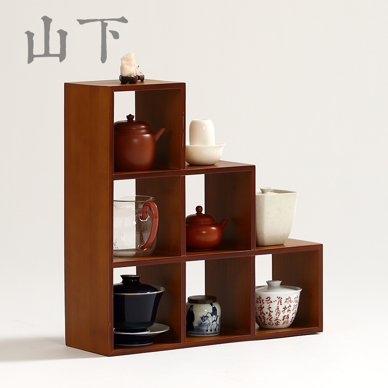 A524 Bamboo Duobaoge Storage Rack Tea Set Teapot Antique Display Rack Vintage Tea Cup Rack Desktop Rack