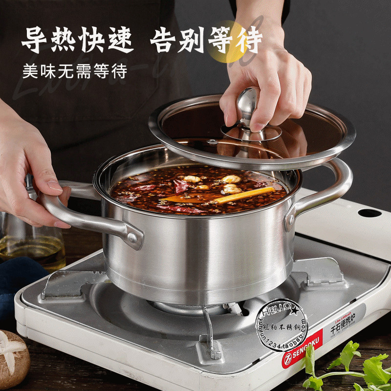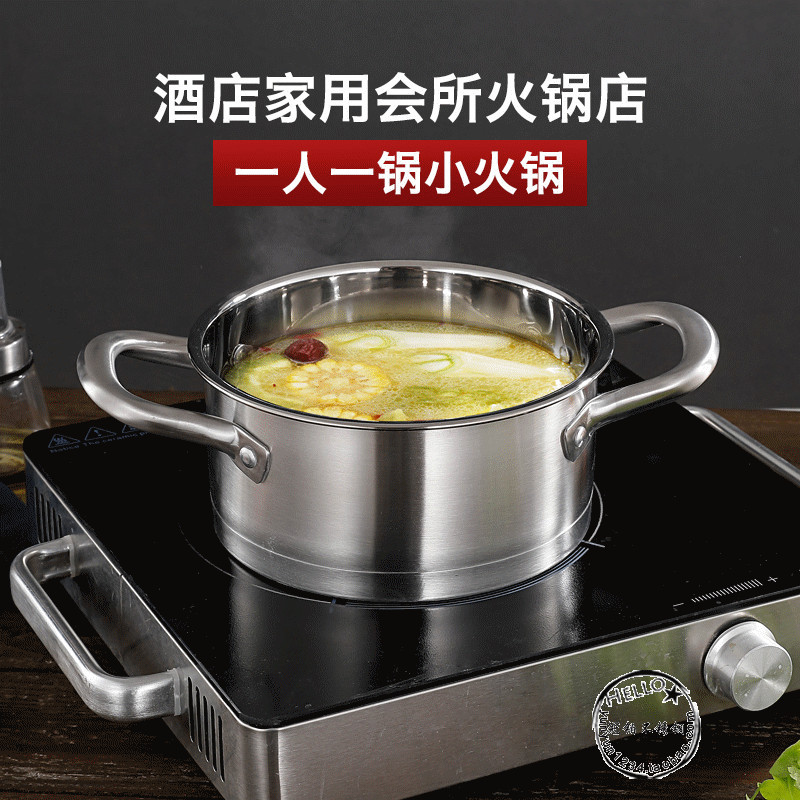 A524 thick 304 stainless steel small soup pot commercial double-ear one-person pot hotel hot pot pot induction cooker double bottom