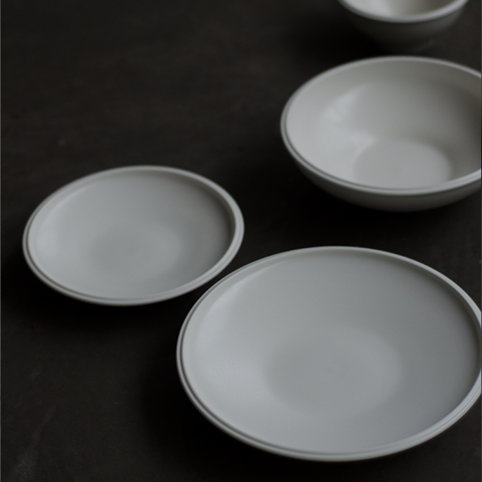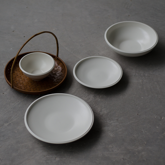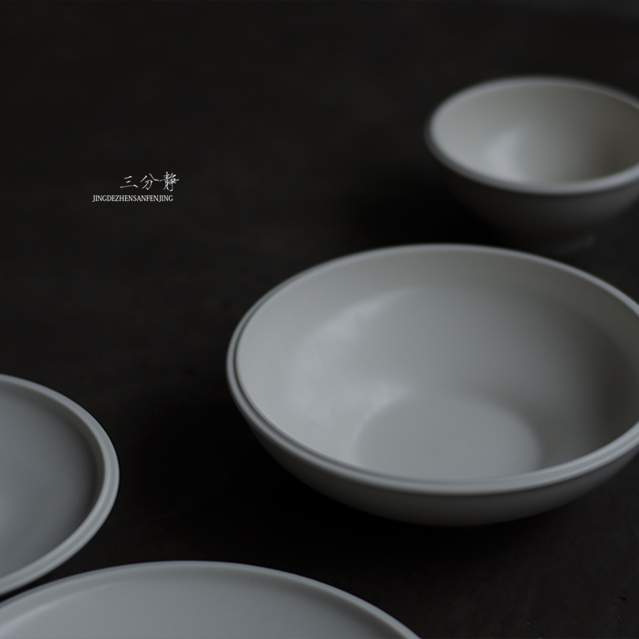 A524 Three-point Quiet Tableware suit Plain Warm White Vegetable Ash Dishes and Dish Household Chinese Dishes Dishpoint Dishes