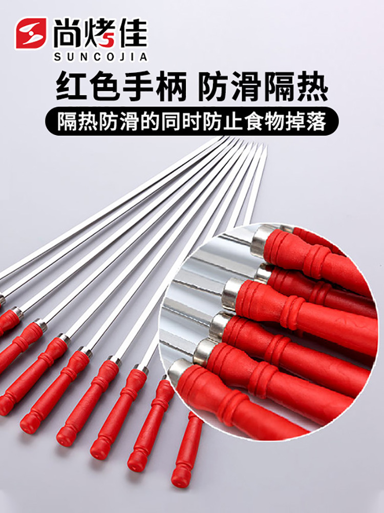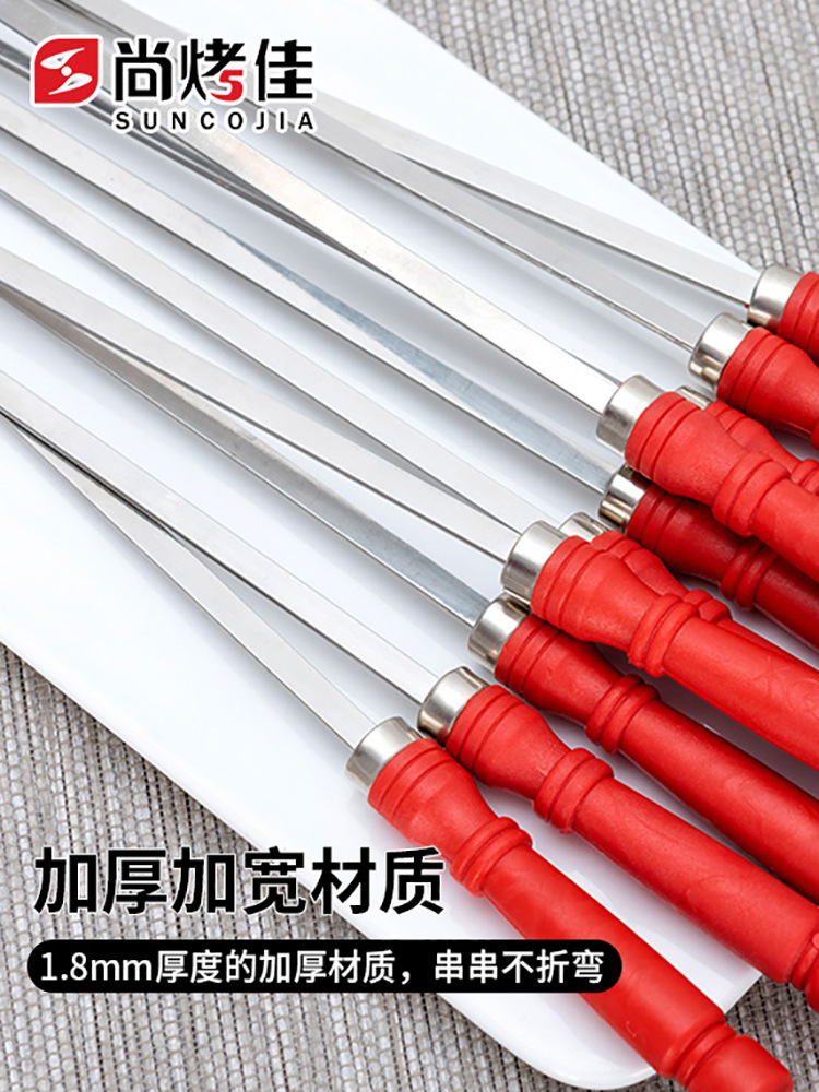 A947 barbecue stick widened stainless steel baking needle anti-scald handle barbecue drill sheep lengthened meat skewers iron cuttage