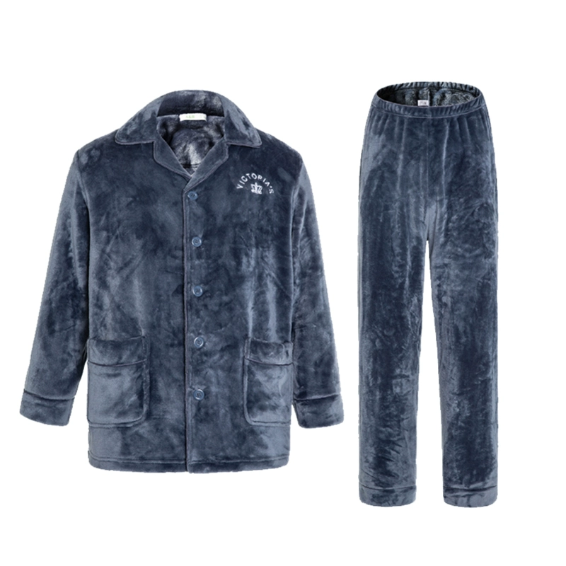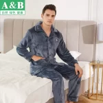 AB pajamas men’s autumn and winter coral velvet thickened velvet lapels long-sleeved flannel warm home clothes two-piece set