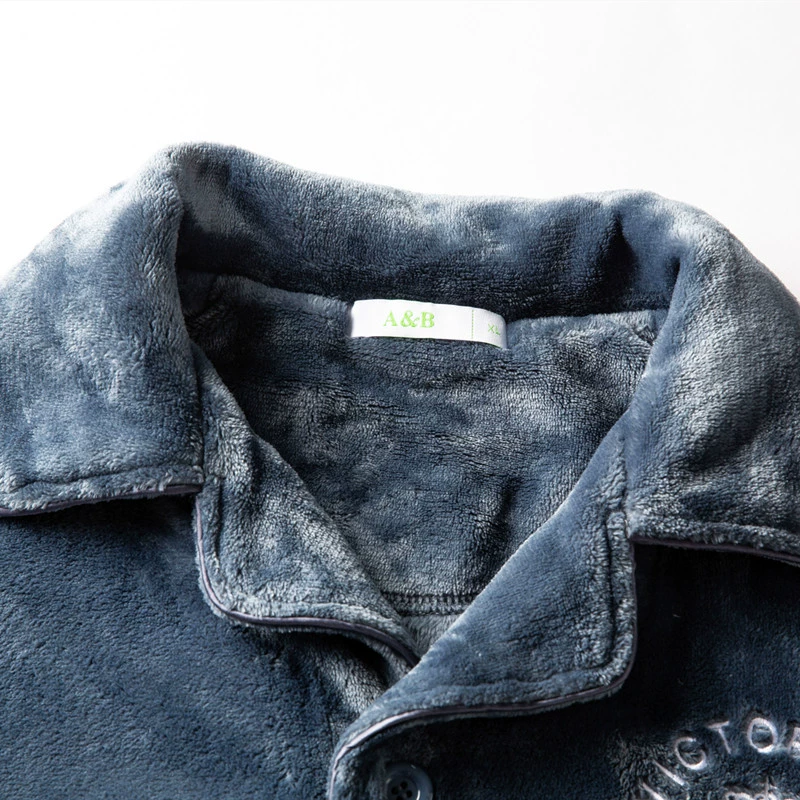 AB pajamas men's autumn and winter coral velvet thickened velvet lapels long-sleeved flannel warm home clothes two-piece set