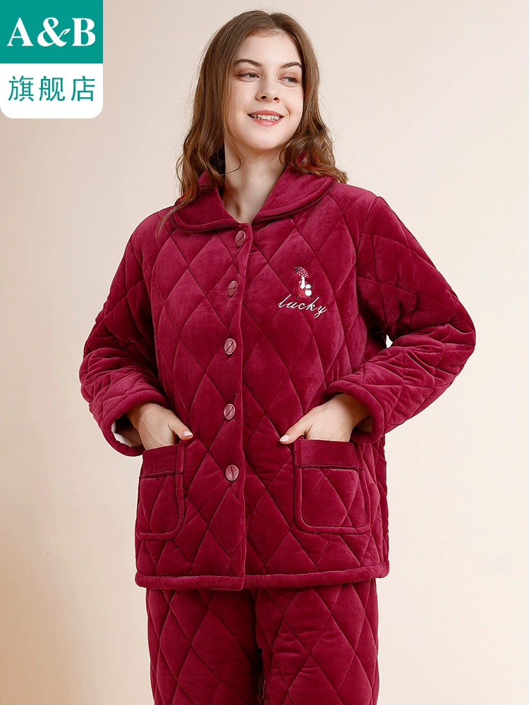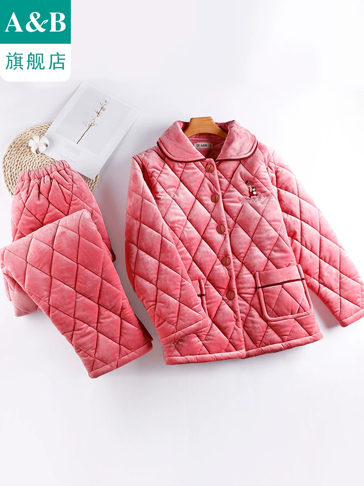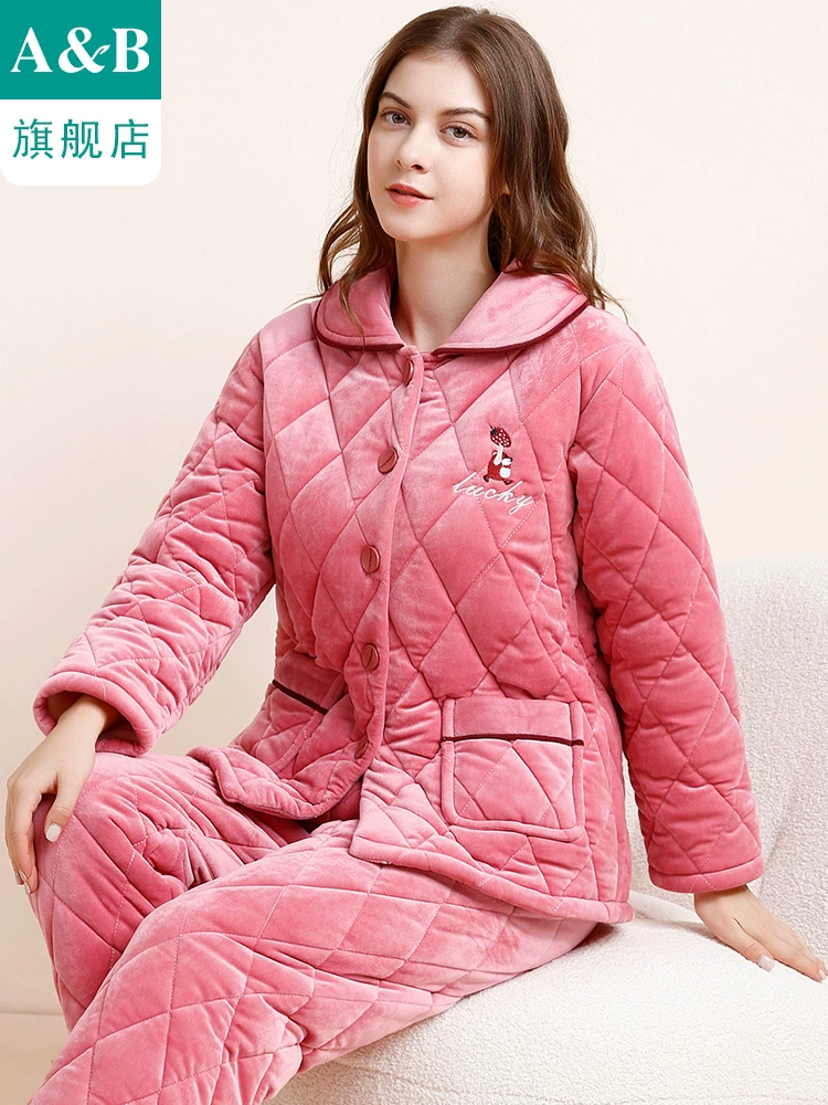 | nameOriginal | ab underwear coral velvet pajamas women's three-layer thickened quilted plus velvet warm flannel home wear set G534 |