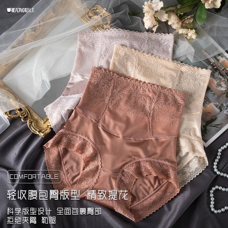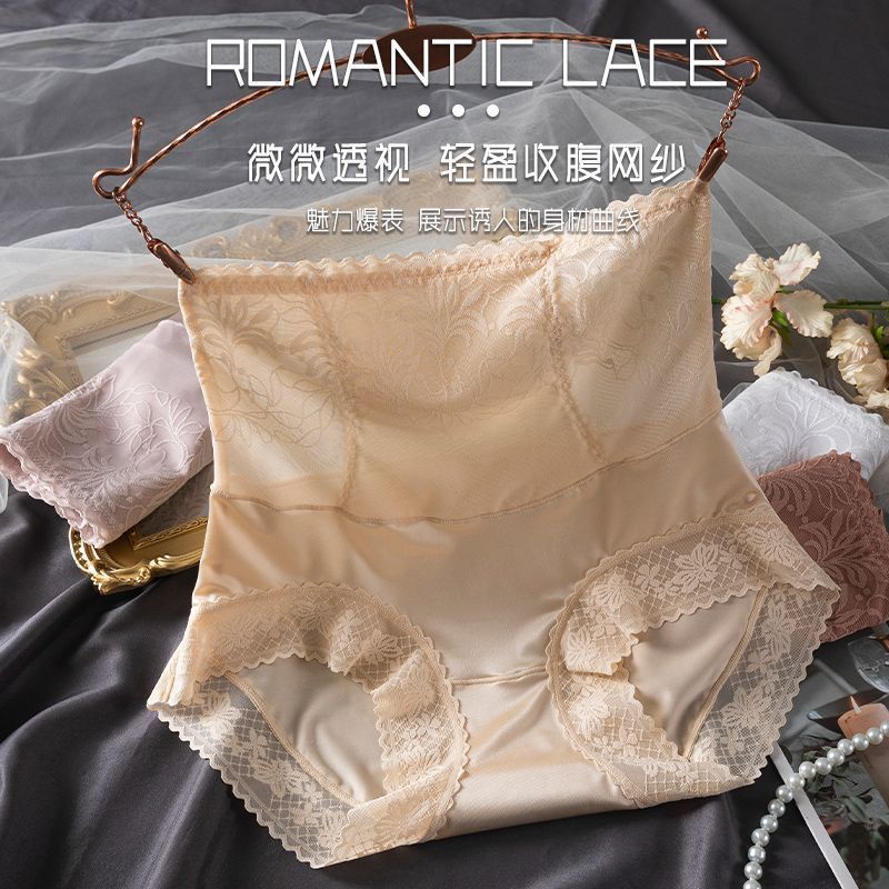 Abdominal Lace Antibacterial Sexy Small Belly Traceless Underwear Women's Breathable Crotch Head Hip-up Pants High Waist Shaping