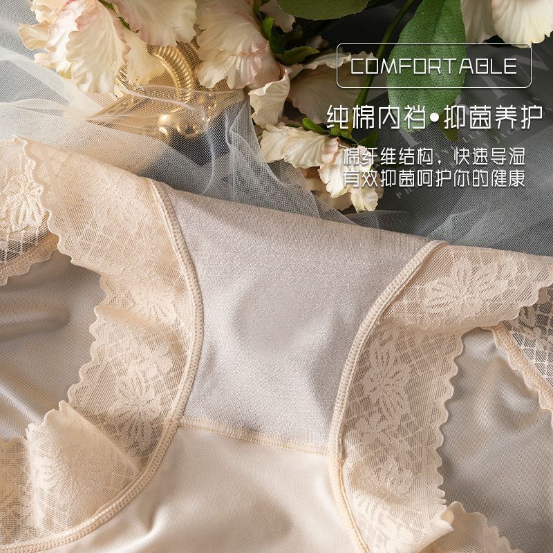 Abdominal Lace Antibacterial Sexy Small Belly Traceless Underwear Women’s Breathable Crotch Head Hip-up Pants High Waist Shaping