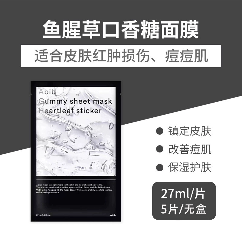 | nameOriginal | abib mask abifu weak acid gum PH reservoir Houttuynia cordata resurrection grass hyaluronic acid collagen |