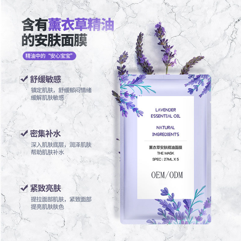 Abishang Lavender Plant Fiber Comfortable Mask Hydrating, Moisturizing, Skin Soothing, Lightweight and Breathable 5 Pieces